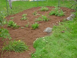 shredding bark around Dan's wormwood and hyssop plants along the side