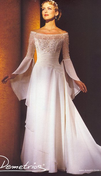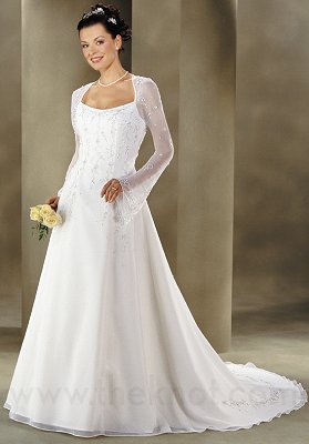 At first I thought I wanted a big Cinderella ball gown type of dress, but the more I think about it the more I'm leaning towards something smaller with a short train. The one thing I've seen that I LOVE are the poet sleeves. Here are some pictures of a bride on a board I visit. I'm not sure about the rest of her dress, but if love her sleeves |